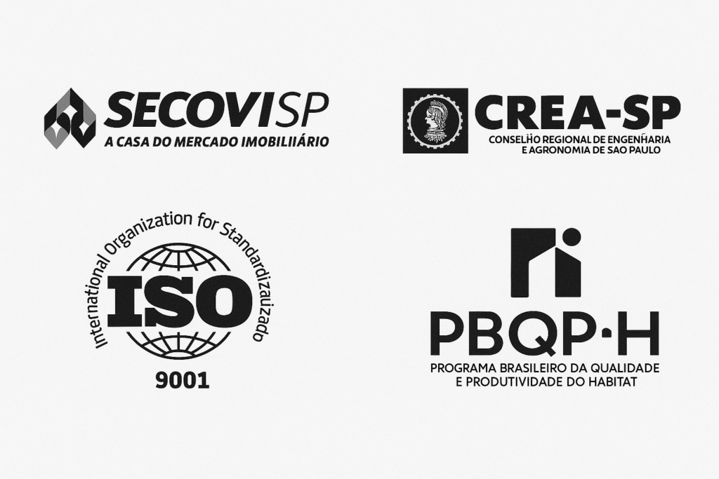 Nosso compromisso com a qualidade é certificado, seguimos os critérios do PBQP-H (Programa Brasileiro da Qualidade e Produtividade do Habitat) e possuímos a certificação ISO 9001, reforçando nosso sistema de gestão e assegurando que cada projeto seja executado com controle, segurança e conformidade técnica.